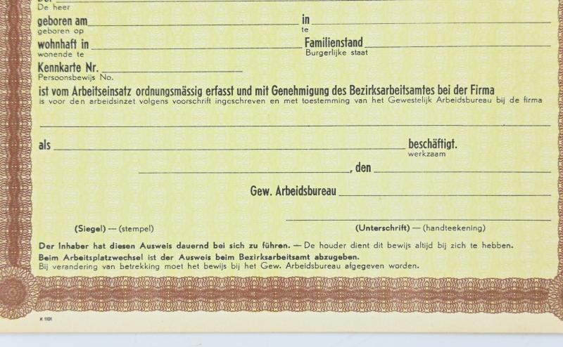 In a mint condition a set of 10 German Dutch Occupation Ausweis Paper for Dutch Citizens.