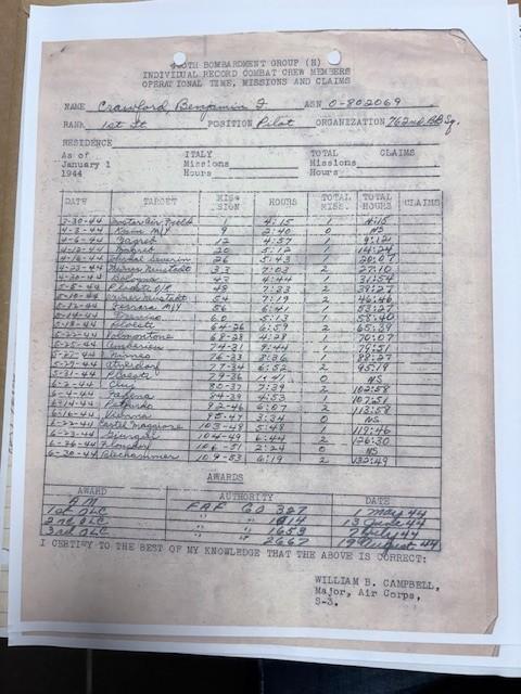 US WW2 Pilot Grouping 460th Bomb Group 50 Missions!