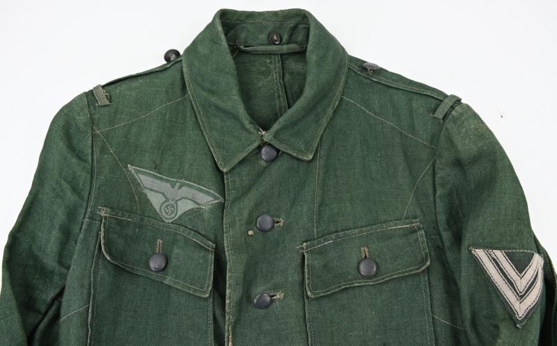 In a very good mint condition a German Wehrmacht (Heer) M43 HBT (Drillich) Combat Tunic.