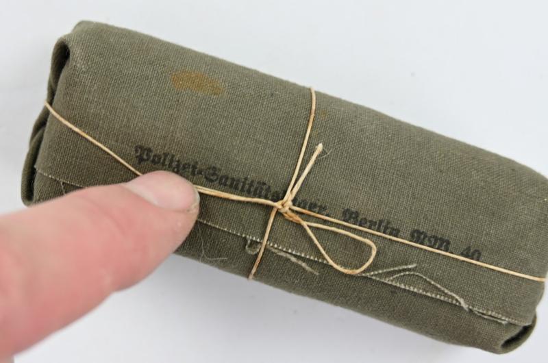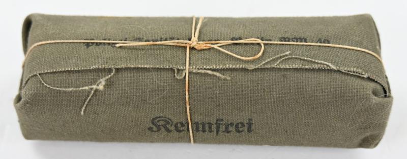 In a stunning mint condition a package of German WW2 Polizei (Police) First Aid Bandage. The canvas made package is nicely dated 1940 and maker marked.