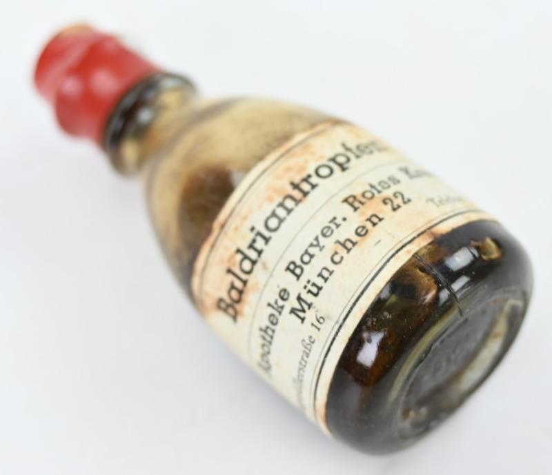 in a very nice condition a German DRK Deutsche Rotes Kreuz Medical bottle of Baldriantropfen (valerian drops or valerian tincture). The bottle comes without content.