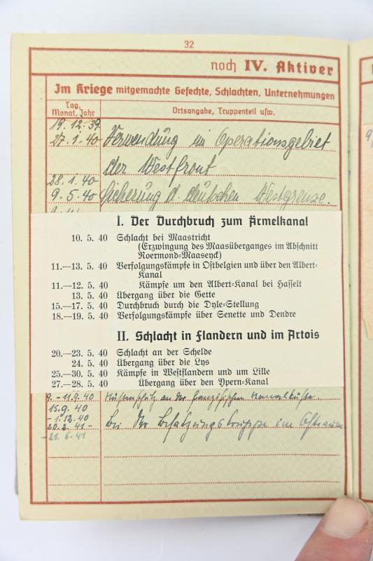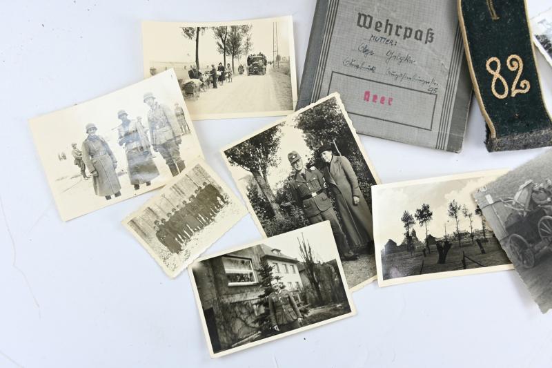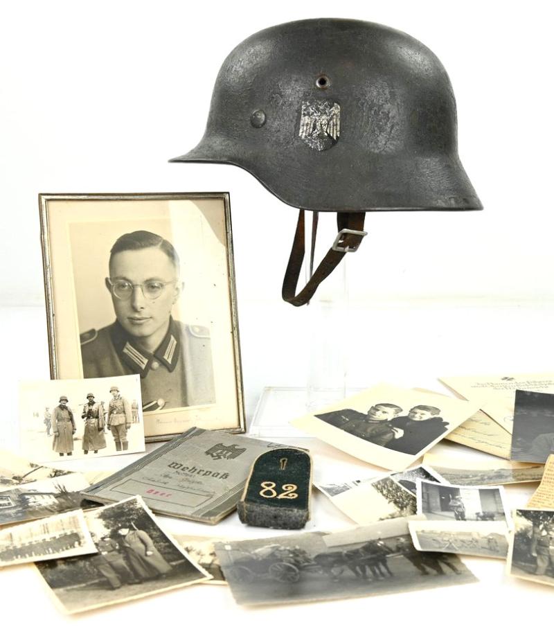 next to his helmet his written 1st pattern wehrpass is present with all his campaigns were he was part in inside.