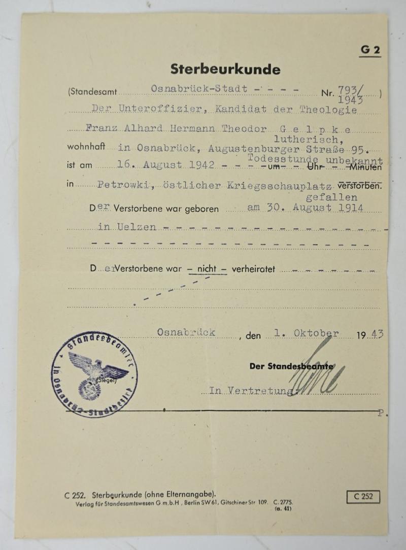 German WH KIA Grouping 'Obergefreiter Franz Gelpke'