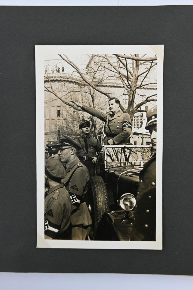 The album contains his trips to the NSDAP Parteitage and with stunning original pictures of Adolf Hitler, Heinrich Himmler (WITH SIGNATURE) and a lot of pictures of Hitlerjugend leader Baldur Benedikt von Schirach!