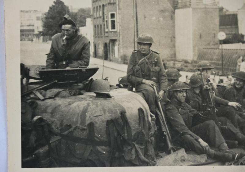 The picture shows british troops on a Sherman Tank of the 30th Corps in Eindhoven September 1944.
