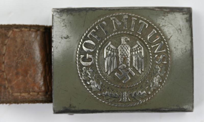 In a very good condition a German Wehrmacht beltbuckle with leather tab.