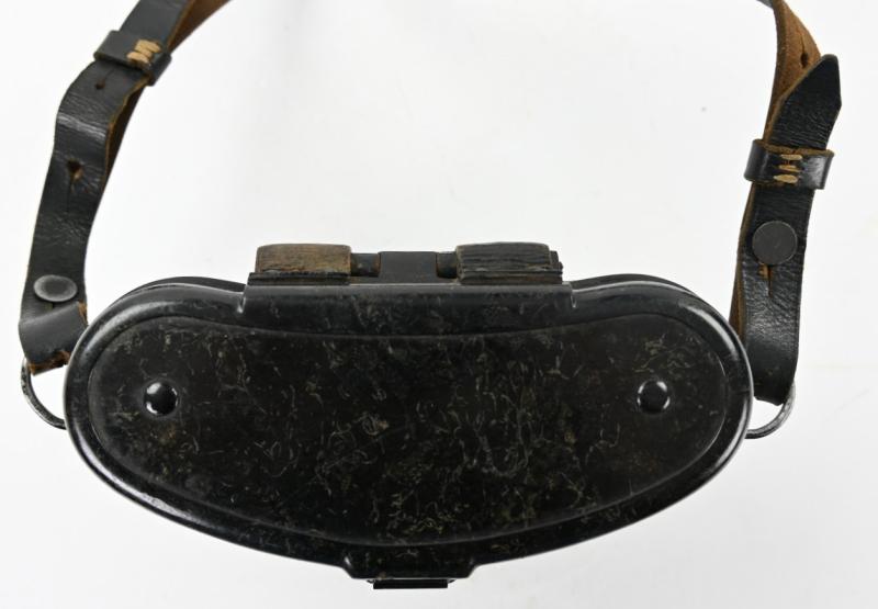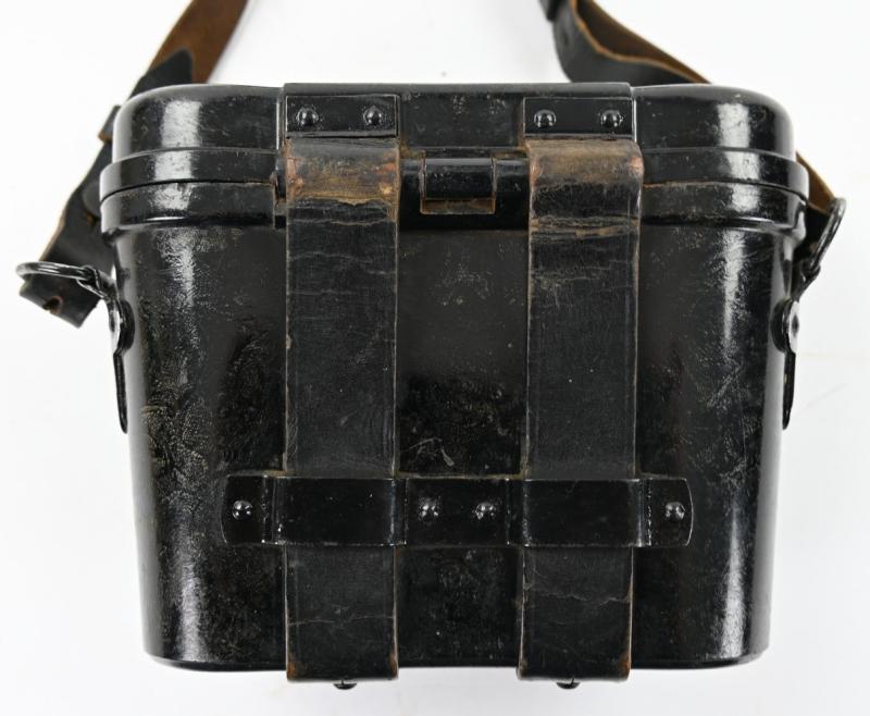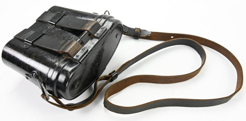 The carrying case is made of bakelite and is complete with the leather belt straps.