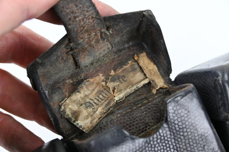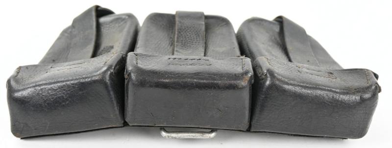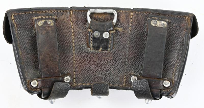 In a combat used condition a German K98 Ammo Pouch. The pouch is nicely maker marked on the reverse side and 1934 dated. The pouch is complete with all dividers and is in a used condition.