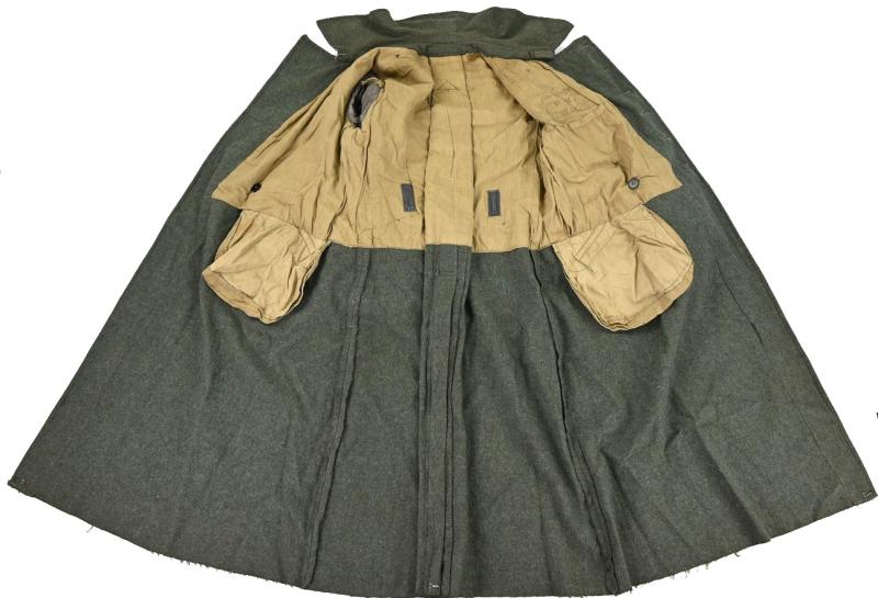 In a very good condition a German Wehrmacht Heer Greatcoat (Tuchmantel). The greatcoat is complete with a pair of enlisted men shoulderstraps with the black piping, indicating a member of the pioneer troops.The greatcoat comes in a good mannequin size and has the size marking on the inside lining justlike the RBN number of the maker.