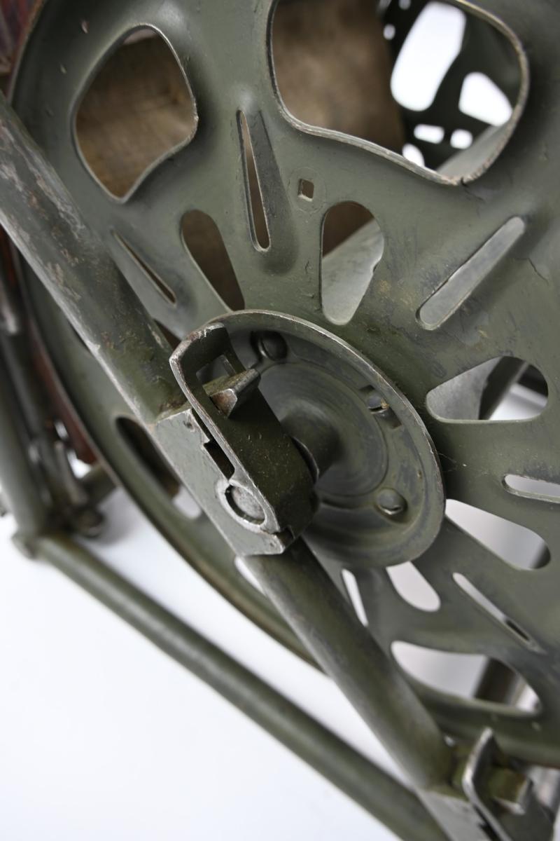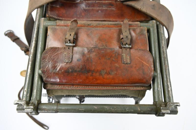 The frame comes in the original paint and is complete with all attached part as the carrying straps, ewuipment pouch, back padding, cable reel chain and tool and the leather break strap.