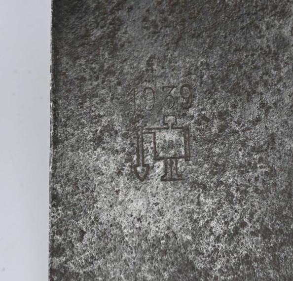 In a very good condition a German Wehrmacht Entrenching Tool. The tool is nicely maker marked and dated 1939. Nice to complete with the carrying cover on our other advertising.