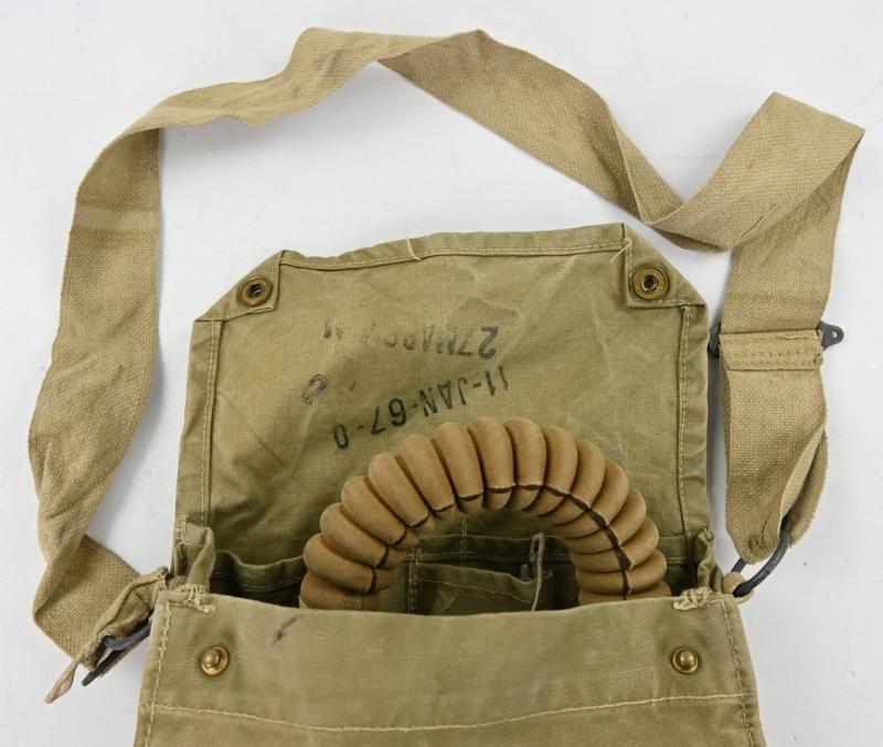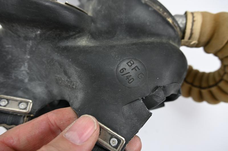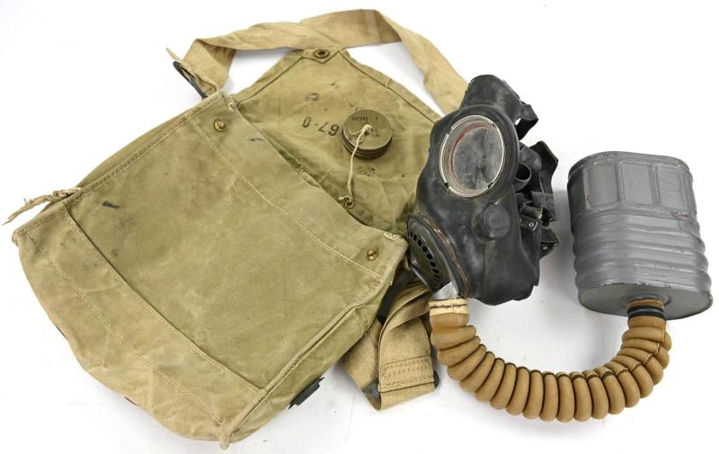 In a very nice condition a British WW2 Gasmask Set in Carrying Bag. The gasmask is nicely 1940 dated and comes with filter and carrying bag.