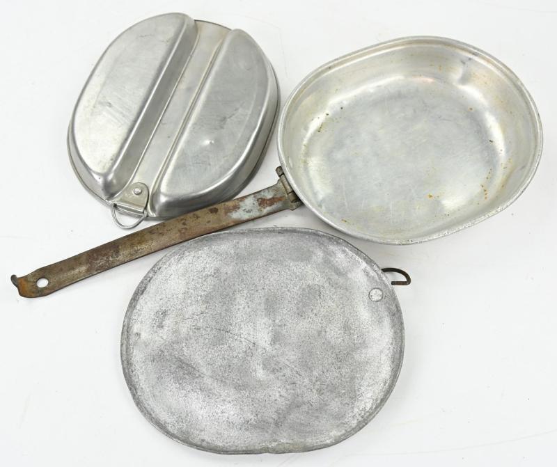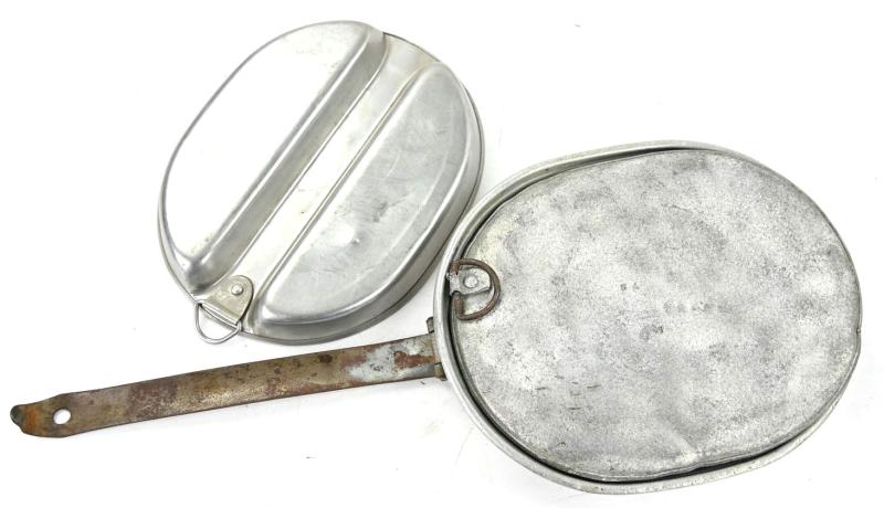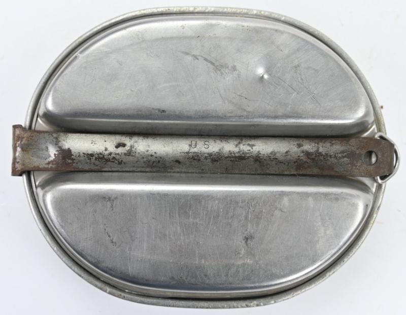 In a very good condition a US WW2 M-1932 Messtin. The zinc made messtin is maker marked by M.C.A. Company and dated 1945. Inside is an extra WW1 pattern cover attached.