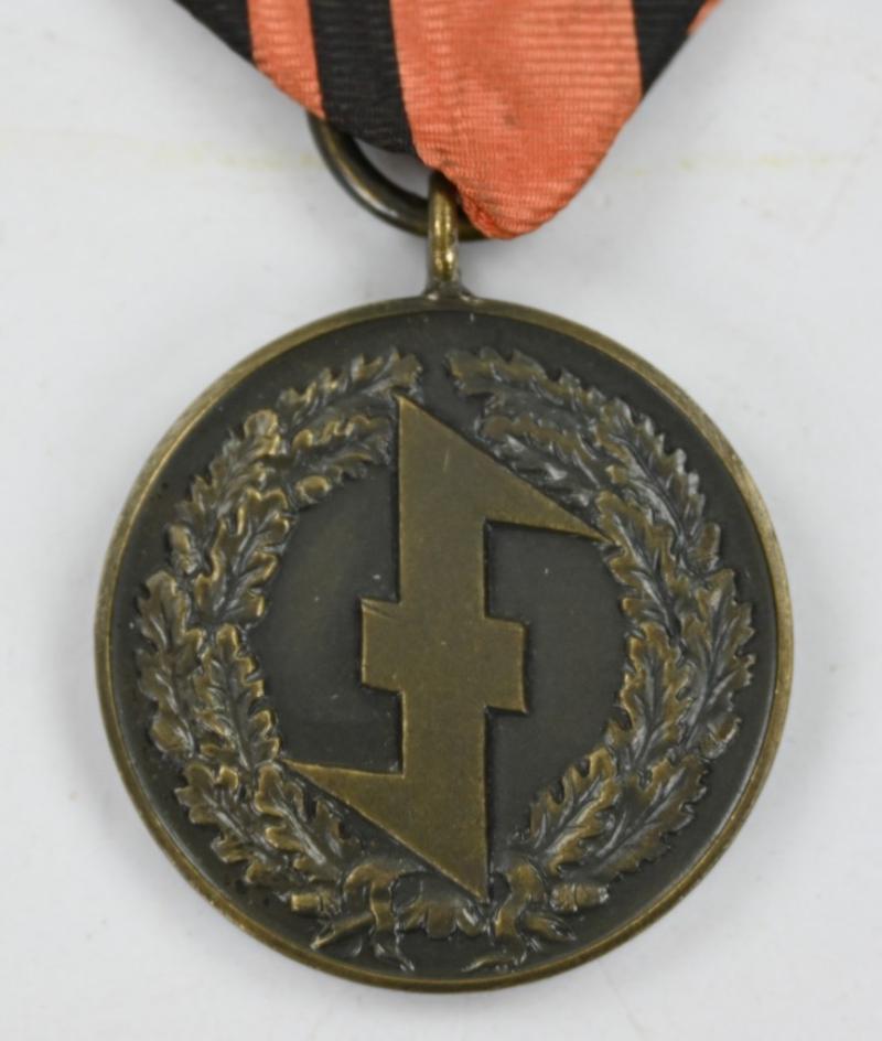 Instituted January 7, 1943, the Dutch NSB-WA “Old Fighters”/“Storm Troopers” Medal was awarded to the original members of the NSB-WA who served during the 1932-1935 period (on December 31, 1935, the WA was disbanded and prohibited, in May 17, 1940, the Netherlands was occupied by Germany), and then again in November 1942 come the NSB’s 10 year anniversary.
