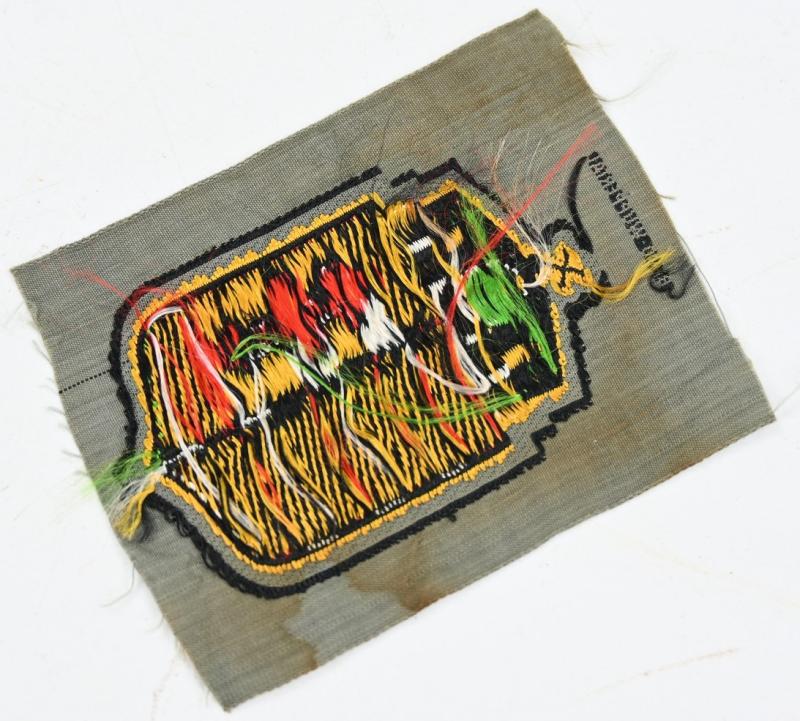 The shield is executed in the neat so-called BeVo weave style on a field-grey linnen background. The shield is in good mint and unissued condition showing only some minor staining caused by years of storage. Nice original Eastern Volunteer Sleeve Shield!