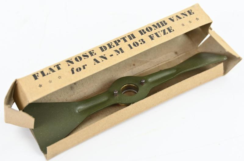 In a very good condition a US Army Air Force WW2 Flat Nose Depth Bomb Vane in Box. These vanes were used for the AN M-103 Fuze.