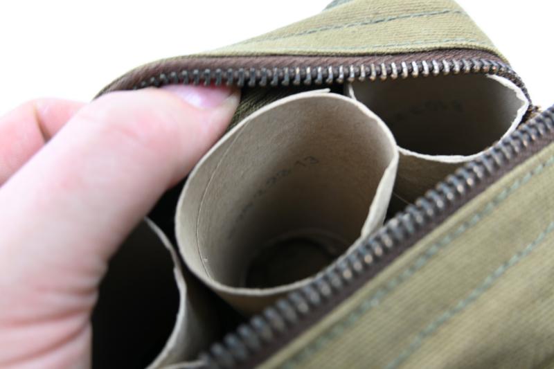 The pouch comes with the six shell carton tubes still on the inside and is 1942 dated.