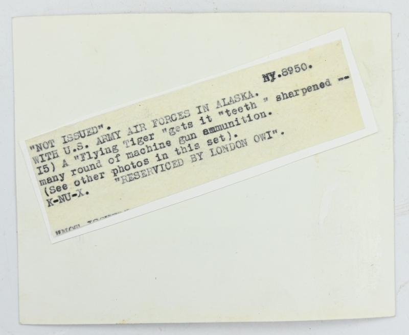 In a very good condition a stunning US WW2 Press Photo 'Flying Tiger'. The picture comes in a size of approx 8x12cm and is nicely labbeled on the reverse side. A very stunning picture!