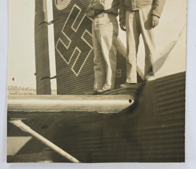 In a very good condition a stunning US WW2 Picture of US Army members on the tale of a German Junkers JU-88 Airplane. The picture comes in a postcard size approx.