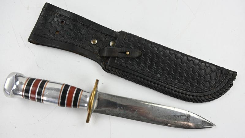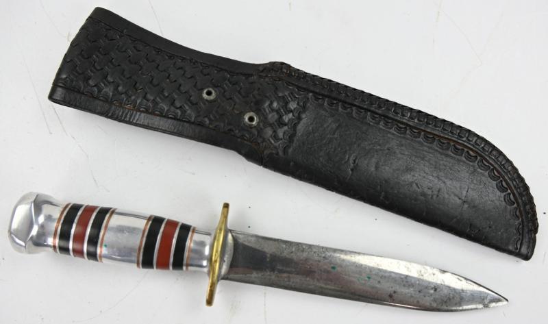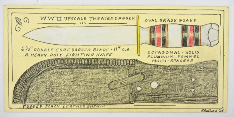 In a very nice condition a US WW2 Upscale Theather Dagger with scabbard. The set comes with a blade of 6,5inch and is one of the theather made ww2 fighting knives! A very stunning example!