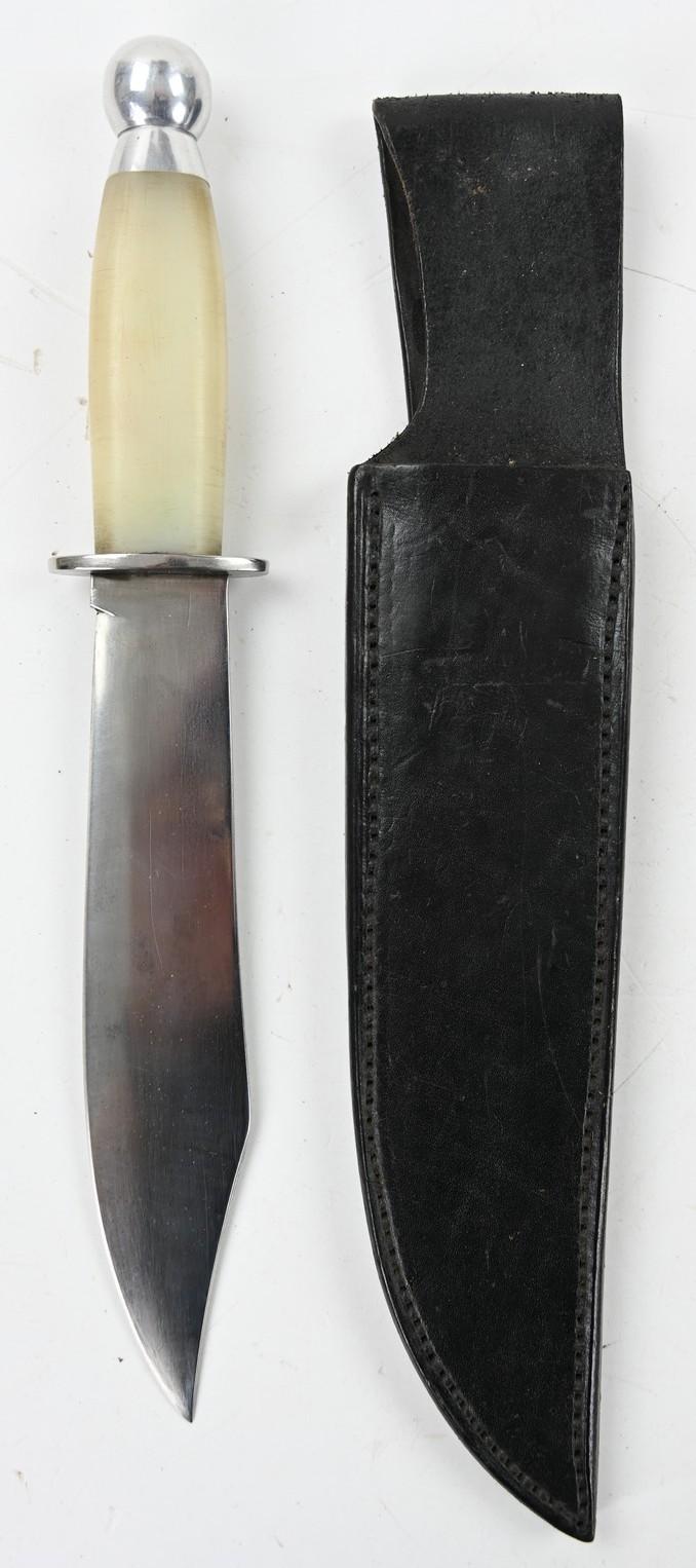 The knife comes in a brown leather scabbard in a supple condition (not certain it's ww2 period made)