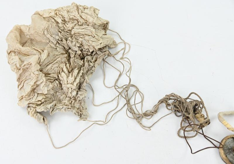 In a very good condition a stunning British WW2 2inch Mortar Flare Parachute. The parachute is complete with the lines and further not marked. A very nice item for display!