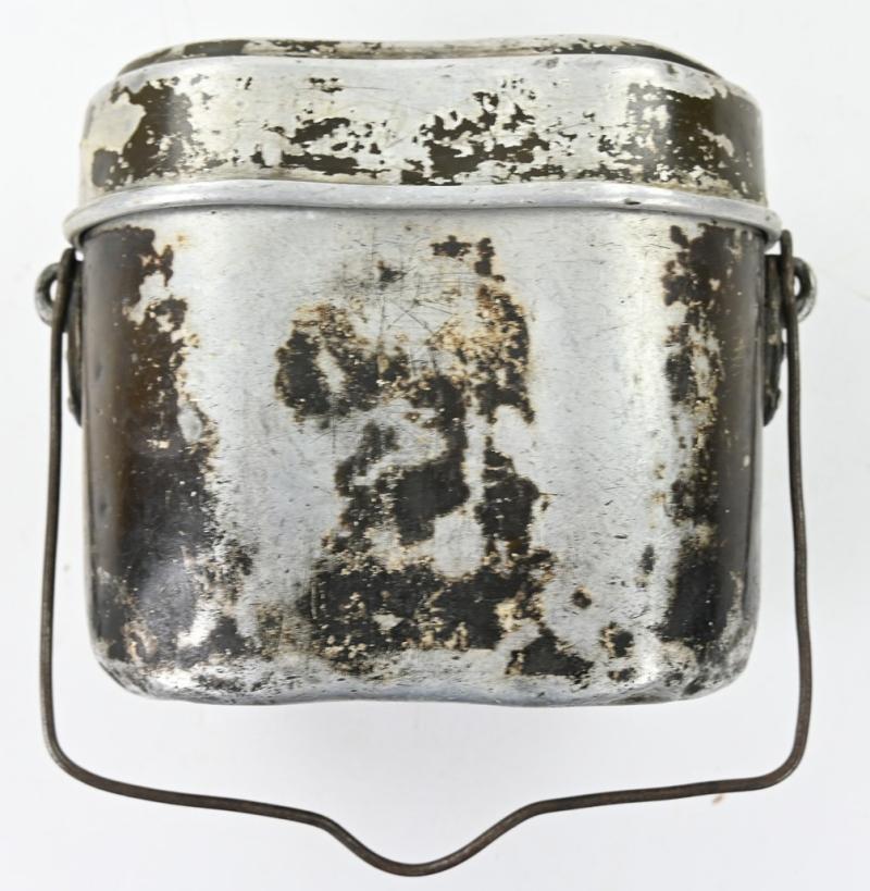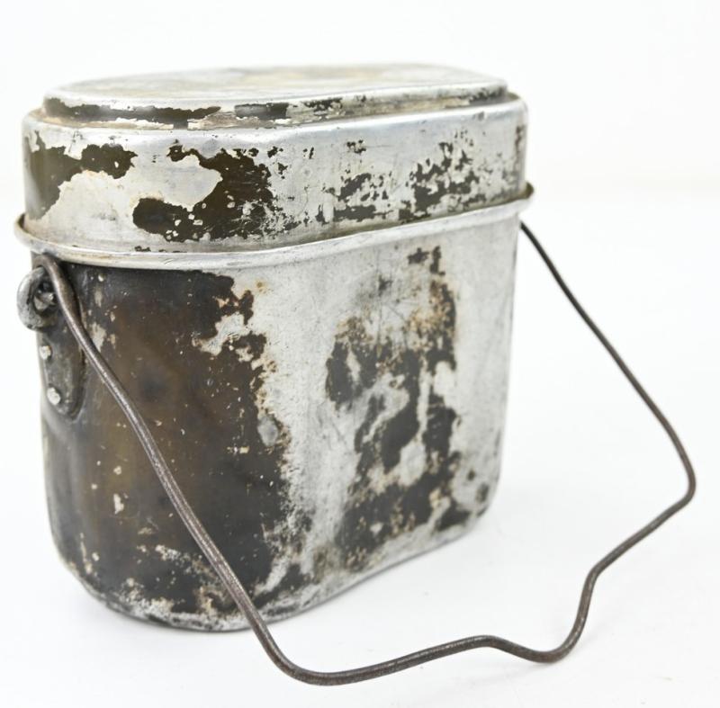 In a used condition a German Wehrmacht M31 Messtin. The messtin comes in Aluminium and has traces of the original paint.