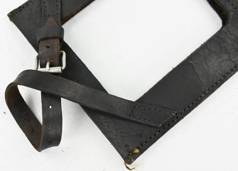 In a very nice condition a German Wehrmacht Entrenching Tool Carrying Frame. The frame comes in black leather, little bit hard but still in a usable condition.