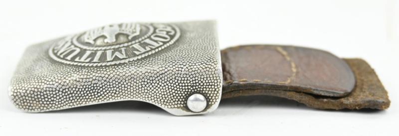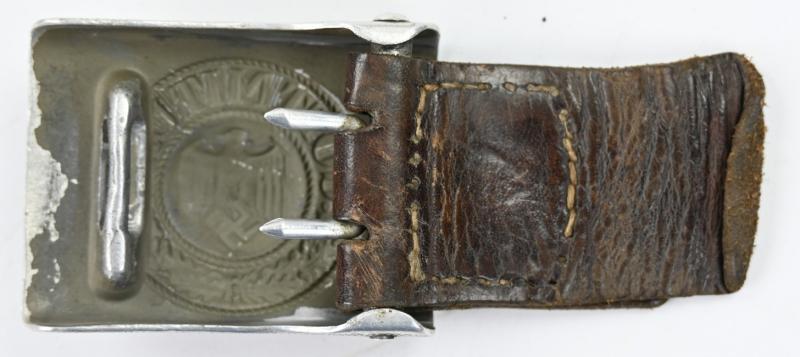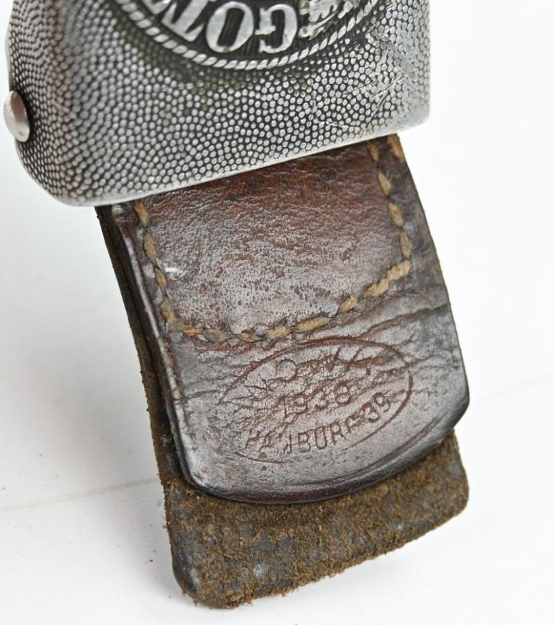 In a very nice condition a German Wehrmacht Aluminium beltbuckle with leather tab. The beltbuckle is nicely maker marked by Nowa Hamburg and 1938 dated.