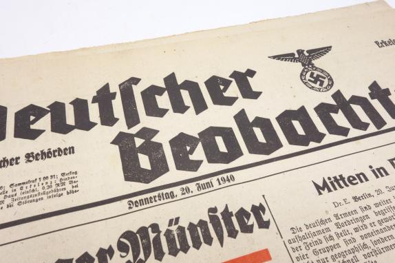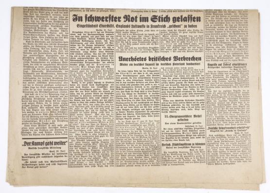 In a very nice condition a German Newspaper "Westdeutsche Beobachter" (Organ der NSDAP) dated 20 June 1940. The header of the newspaper is the invasion of Luxembourg.