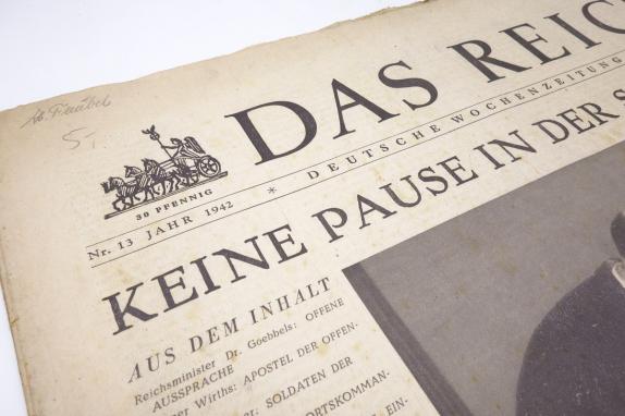 In a very nice condition a German Newspaper “Das Reich” dated 29 March 1942. The paper comes with a very nice header.