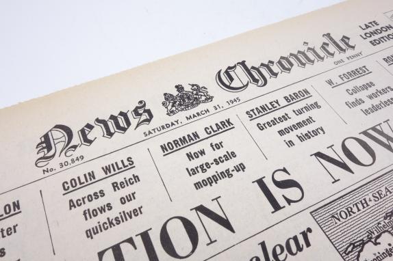 In a near mint condition a British "News Chronicle" newspaper dated 31 March 1945. The header of the paper reads "Annihilation is now at hand". A very nice British wartime newspaper