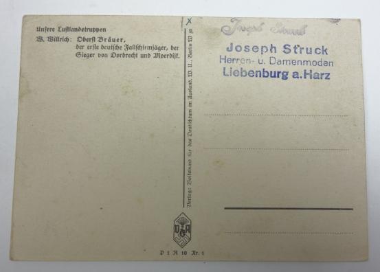 In a nice condition a German 'Willrich' period picture-postcard with a very nice drawing of Oberst Brauer, Der Sieger von Moerdijk, in overall very nice condition.