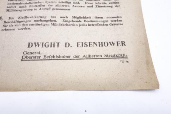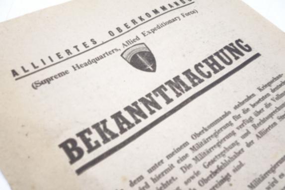 In a very good condition an US WW2 Announcement leaflet with new rules to the German people from the "Supreme Headquarters Allied Expeditionary Force" aka "SHEAF"