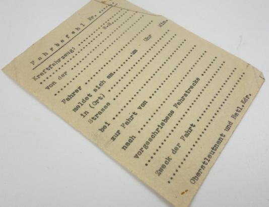 In a very nice condition a German Wehrmacht Transport Order (or "Fahrbefehl")