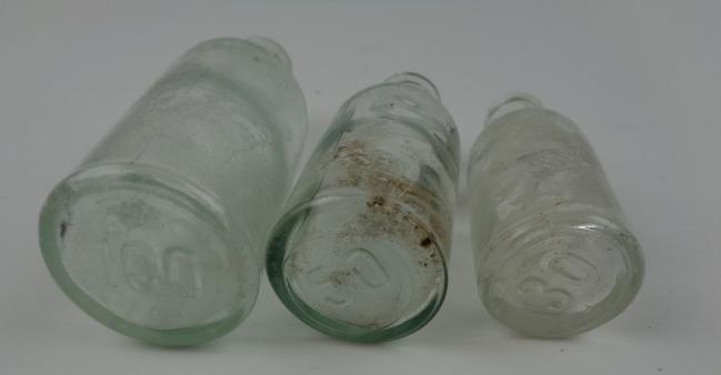 In a nice condition a set of three German Wehrmacht Medical Bottles. The glass bottles have 3 different sizes and are nice for a medical display!