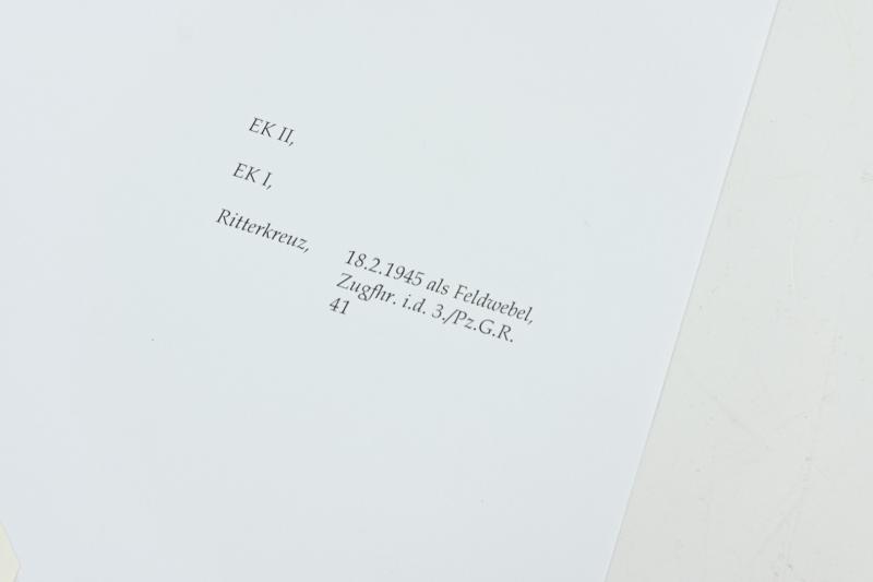 Leutnant Hönig earned the Knight's Cross of the Iron Cross as Zugführer, 3. Kompanie, I. Bataillon, Panzergrenadier-Regiment 41, 10. Panzergrenadier-Division on February 18th, 1945.