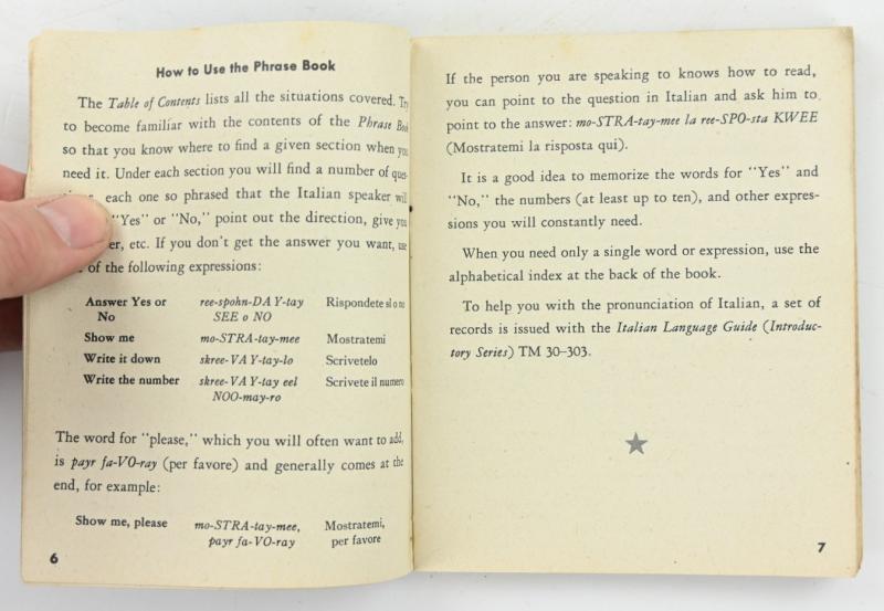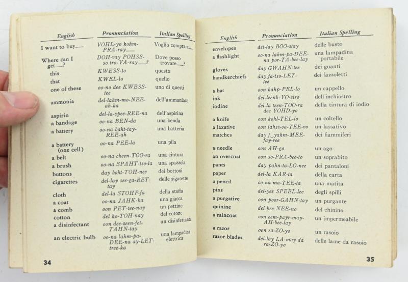 In a very good condition a US WW2 Italian Phrase Book. The book is nicely dated 1943 and comes in a complete condition.