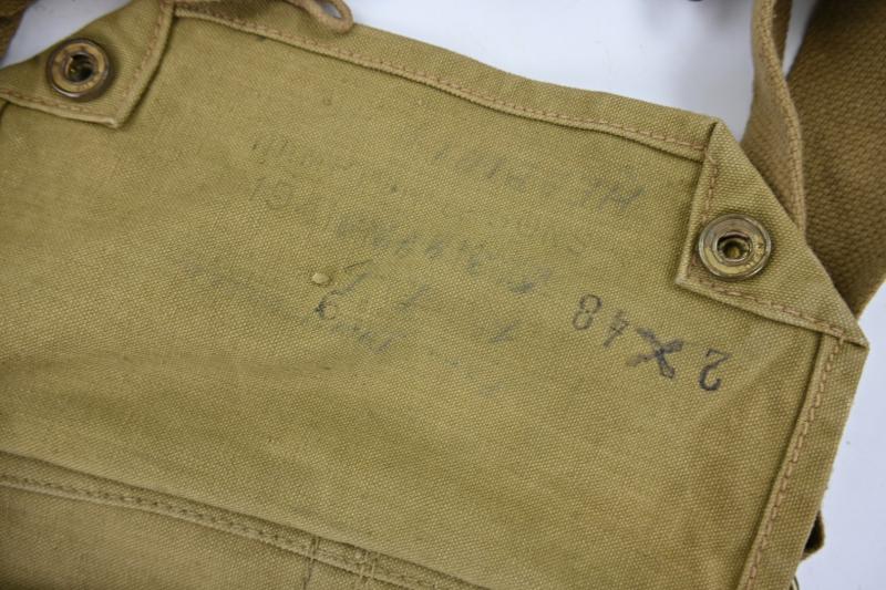 In a very good condition a British WW2 Gasmask Pouch. The empty pouch comes with the carrying sling and is nicely named, maker marked and dated 1941. A very nice pouch.
