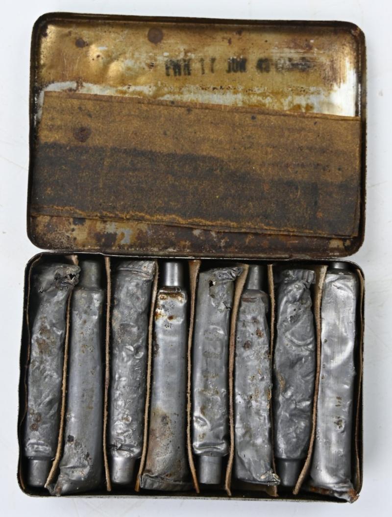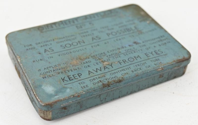 In a very nice condition a tin can of British WW2 Anti-gas Ointment No.5. The tin can comes with the orginal content inside!