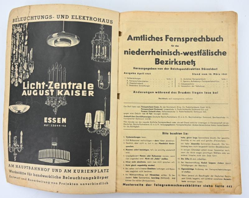 In a very good condition and very hard to find a German Third Reich Phonebook (Amtliches Fernsprechbuch) of Dusseldorf. The book comes in a complete condition and is dated 1941.