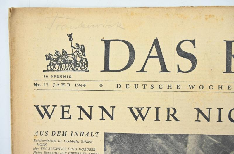 In a very nice condition a German Newspaper “Das Reich” dated 23 April 1944. The paper comes with a very nice header.