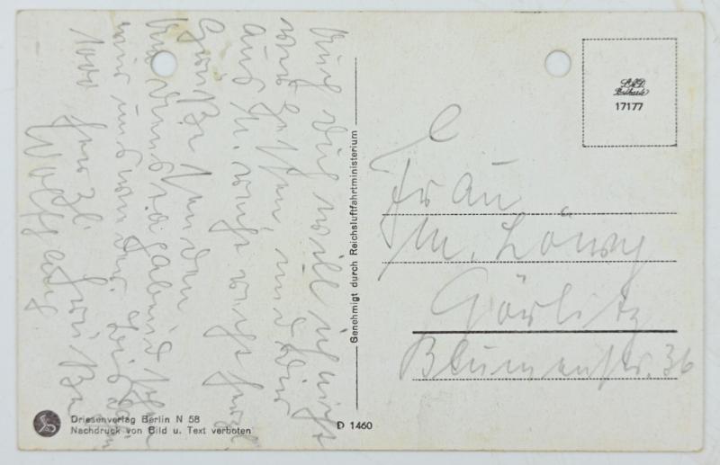 In a very nice condition a German Luftwaffe Postcard 'Fallschirmjager'. The postcard is written on the reverse side.