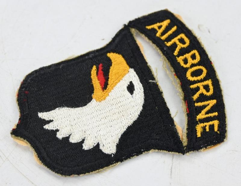 In a mint condition a US WW2 101st Airborne DIvision Shoulder Sleeve Insignia. The SSI comes in the Type 3 pattern and was attached to a scrapbook. A very nice example!