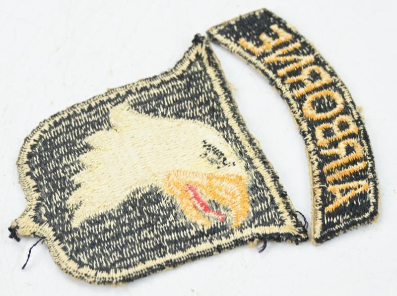 In a mint condition a US WW2 101st Airborne DIvision Shoulder Sleeve Insignia. The SSI comes in the Type 1 pattern and is never used! A stunning example!