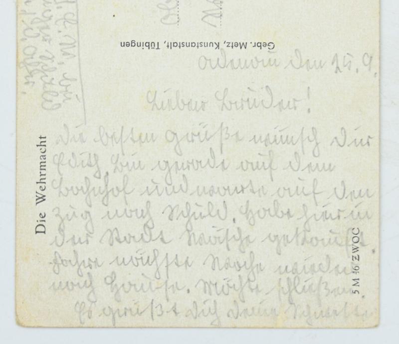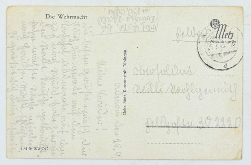 In a very nice used condition a German Wehrmacht Postcard 'Uns schmeckt's immer!'. The postcard is written and dated 1943.