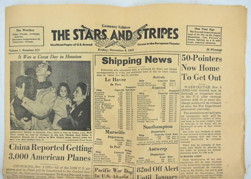 In a very nice condition a US WW2 'The Stars and Stripes' Newspaper. The newspaper is dated 9 November 1945 and is the German Edition.