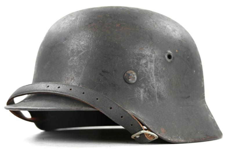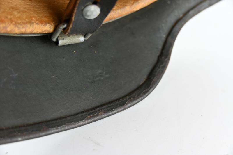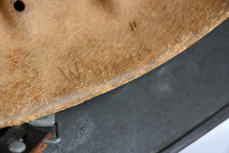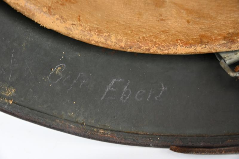 It has on the outside of the helmet shell the original camo paint for 98% and is on the inside marked to 'Gefreiter Ebert'.