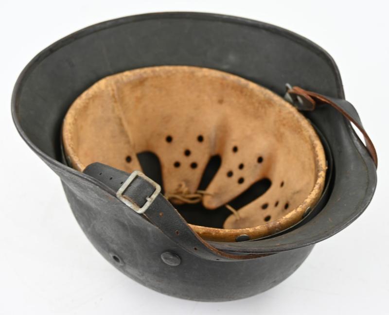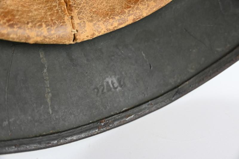 The helmet is made by SE, indicating production by Sachsische Emaillerwerke, Lauter and comes with productionnumber 22466.