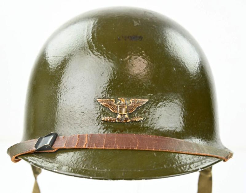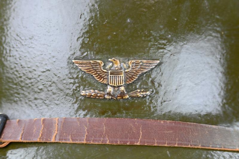 On the front of the helmet is a wartime applied Colonel rank insignia attached.